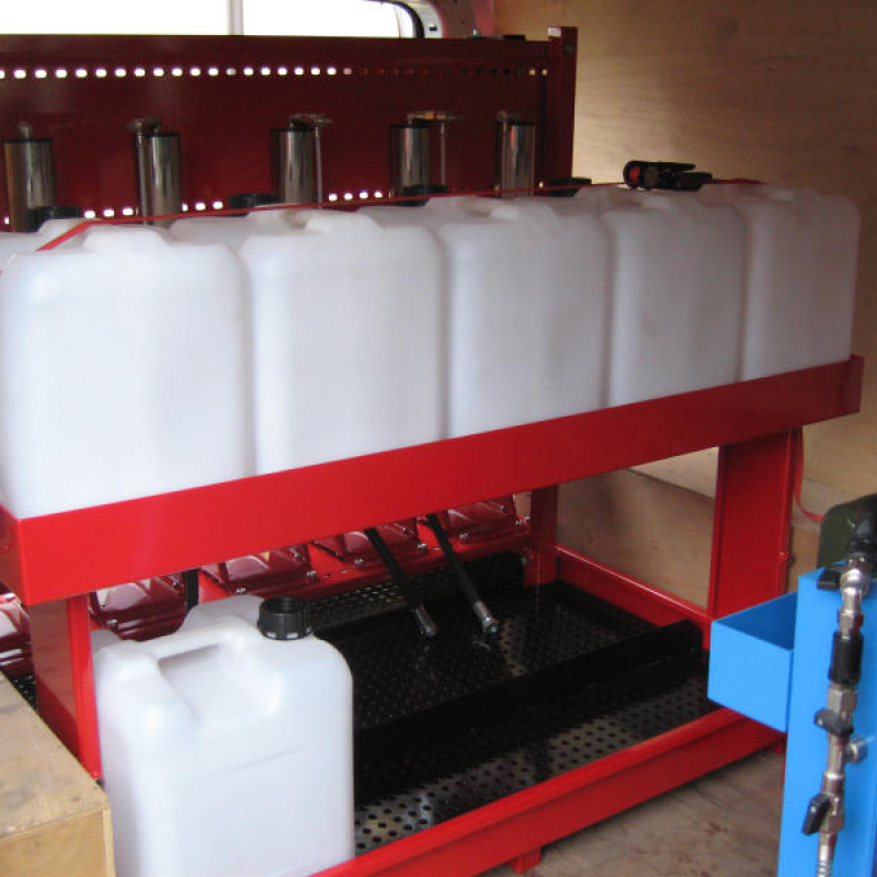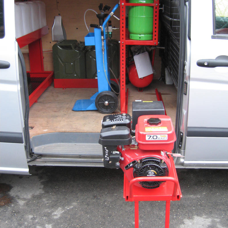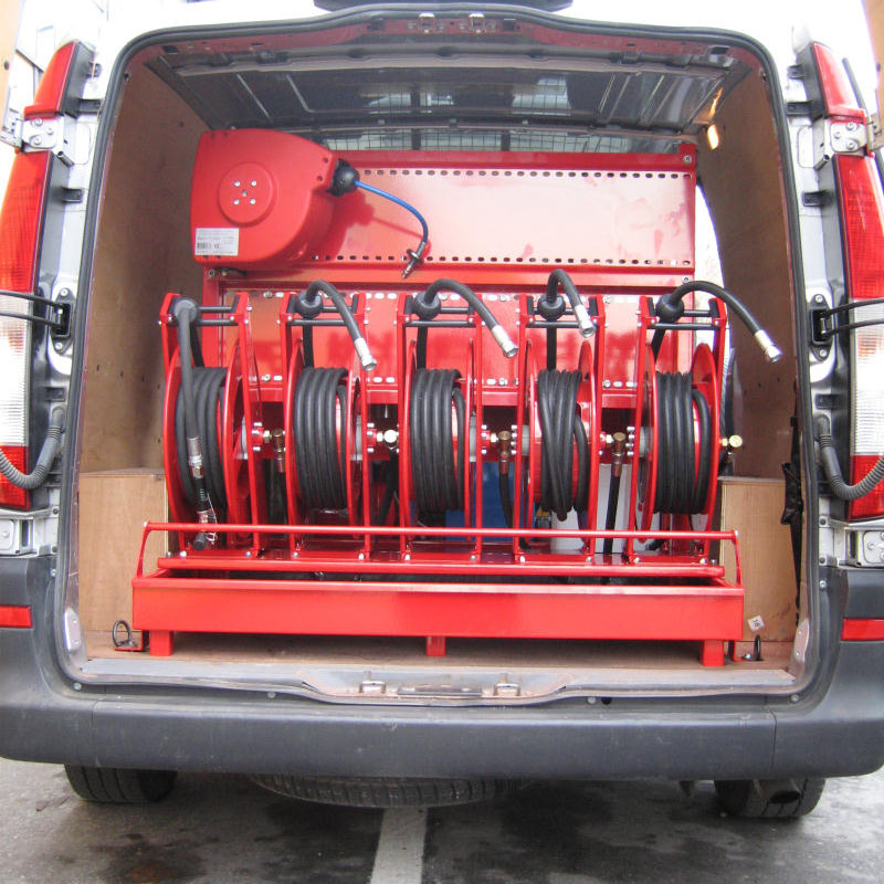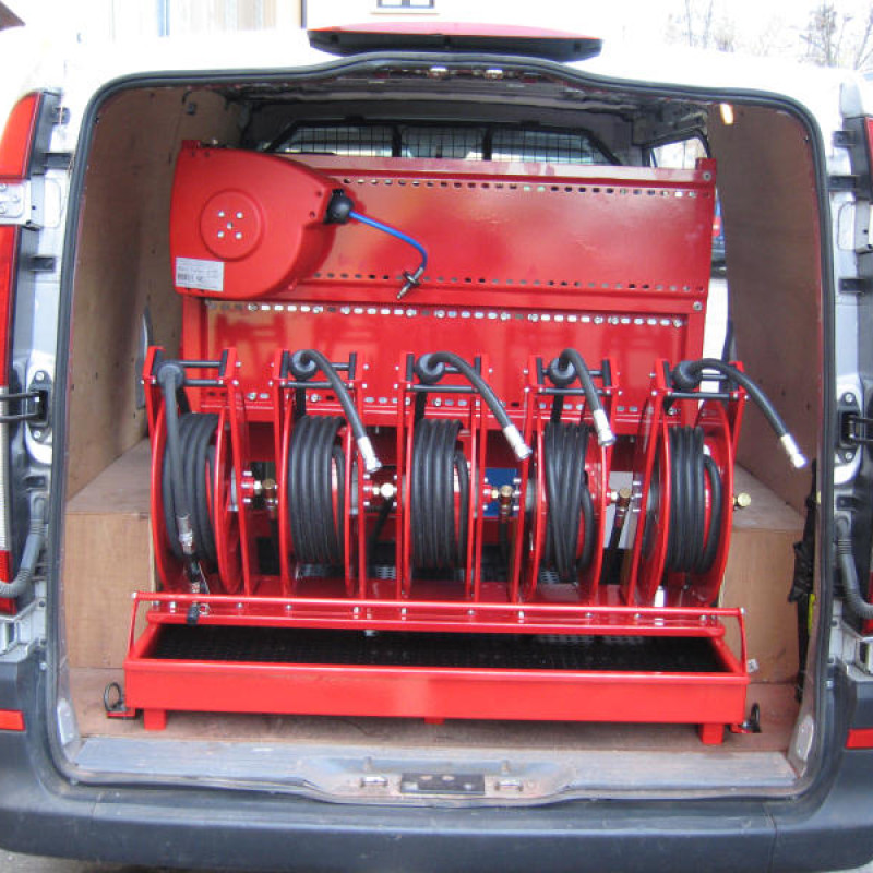 Impianto mobile installato all'interno di un furgone per la bonifica degli autoveicoli