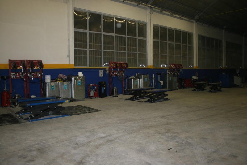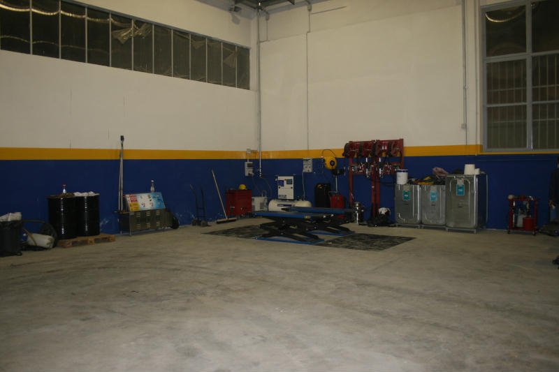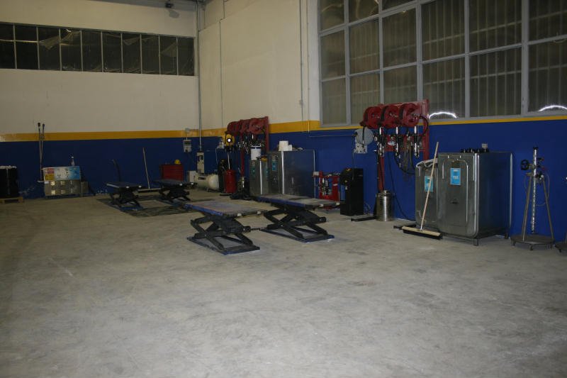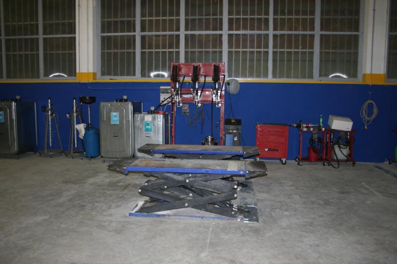 area di lavoro dotata di 3 sollevatori a doppia forbice con 3,2 ton di portata